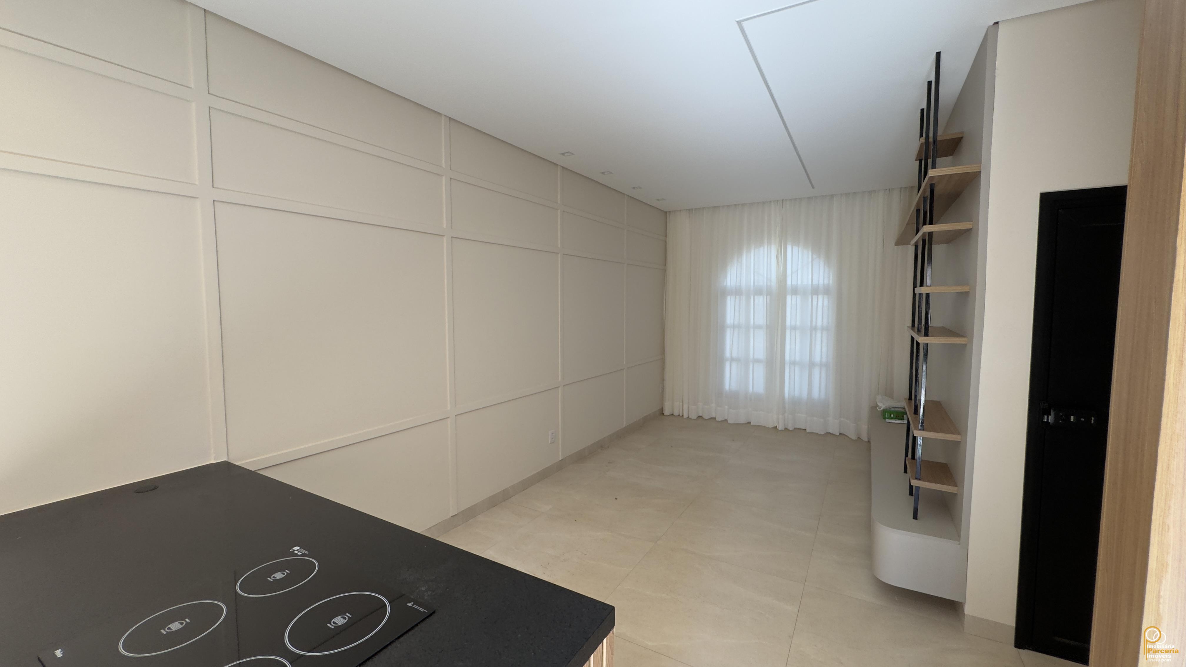 – Living integrado, conectando sala, copa e cozinha