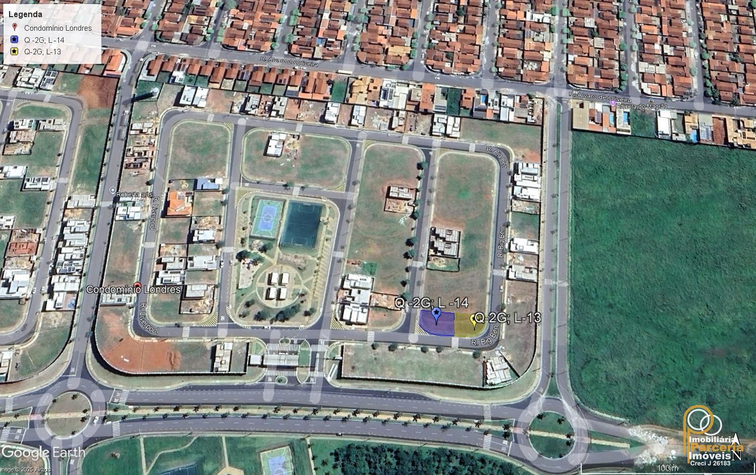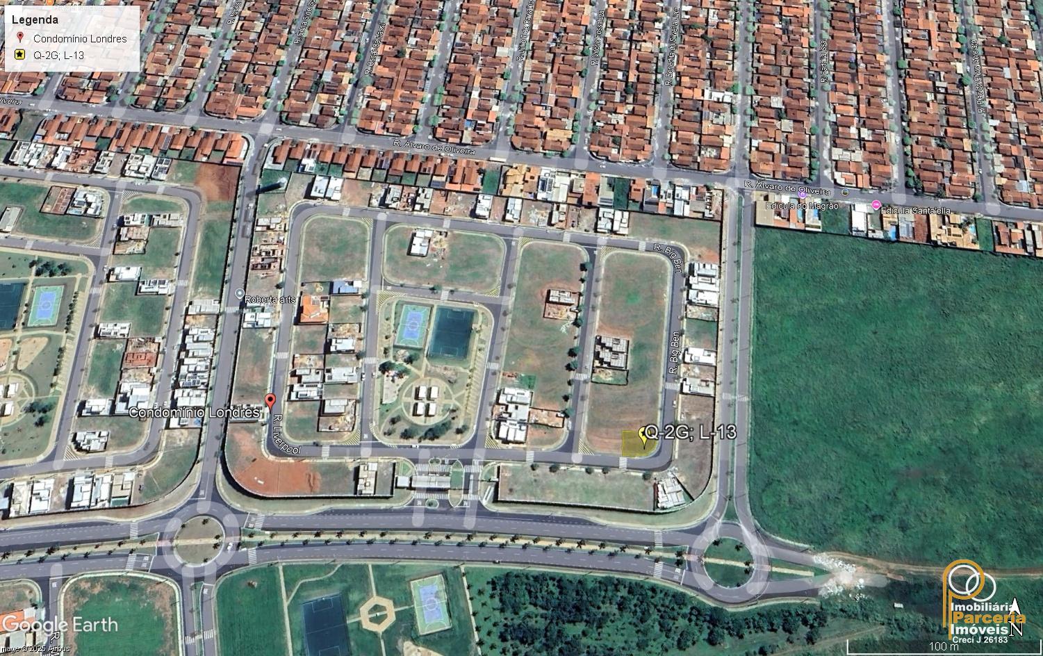 Lote de esquina, localizado no Condomínio Londres – Jardim Europa, Quadra G, Lote 13, com área aproximada de 206 m², em posição estratégica dentro do condomínio, ideal para quem busca privacidade, valorização e excelente aproveitamento de projeto.